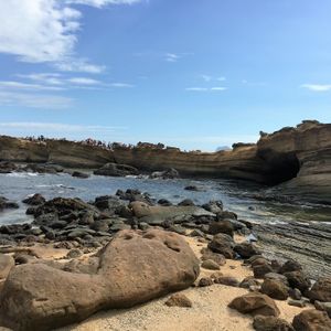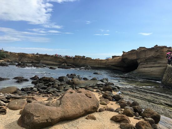 野柳地質公園では、後数年で折れてしまうかもしれない、QUEENの石を見ることができました。