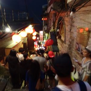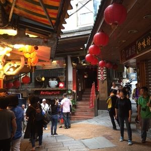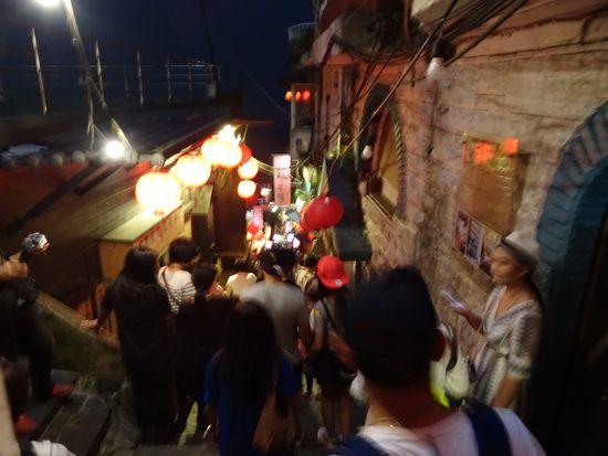あいにくの雨模様での九份見学でした。狭い道での観光客の往来で、ゆっくり見学とはいかずに周辺の雰囲気を味わうのが精いっぱいでした。日曜日のためツアーバスは途中で乗換になるのですが、その際トイレに行く時間があったけど我慢を強いられました。乗り換え時間を見て、今後配慮してほしいと思う。