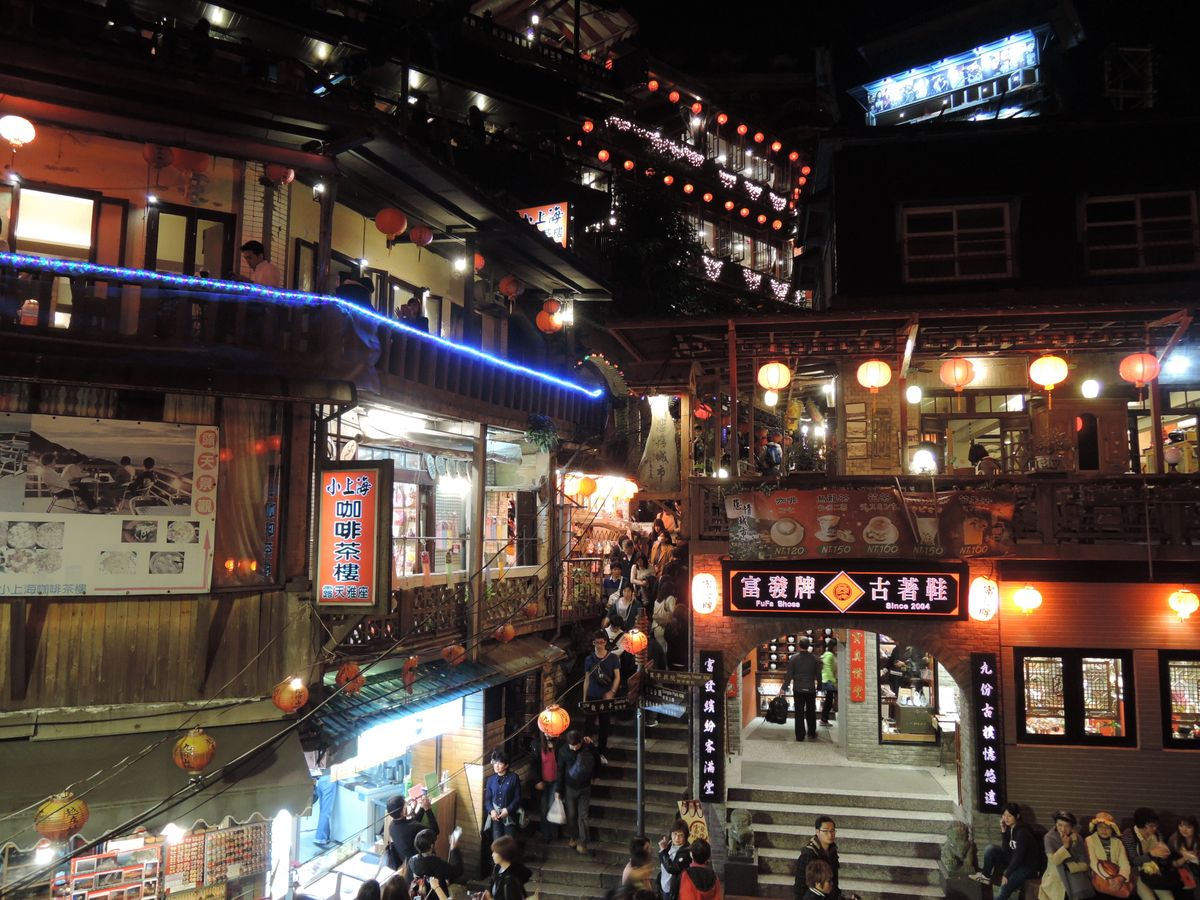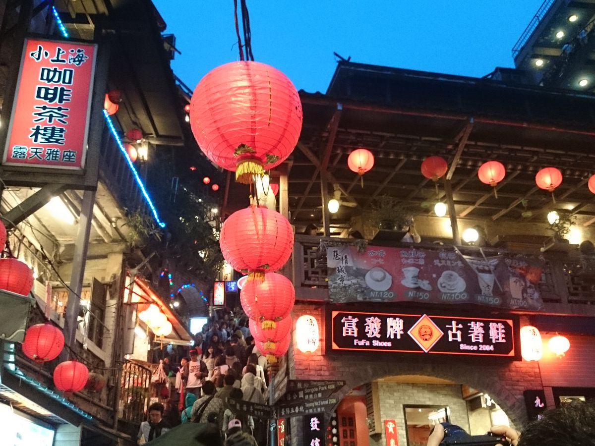 夜の九ふんは、とても凄い人でした。覚悟はしていたけど。スーチールーの階段は、一番上まで登る事が出来ませんでした。でも、提灯の明かりがついて綺麗でした。今回の添乗員(なみちゃん)は、声が大きくてハキハキして良かったです。九ふんの手作りの地図が用意してあり、分かりやすかったです。混んでいても、雨が降らなかって良かったです。雨が降ったら、最悪だった。