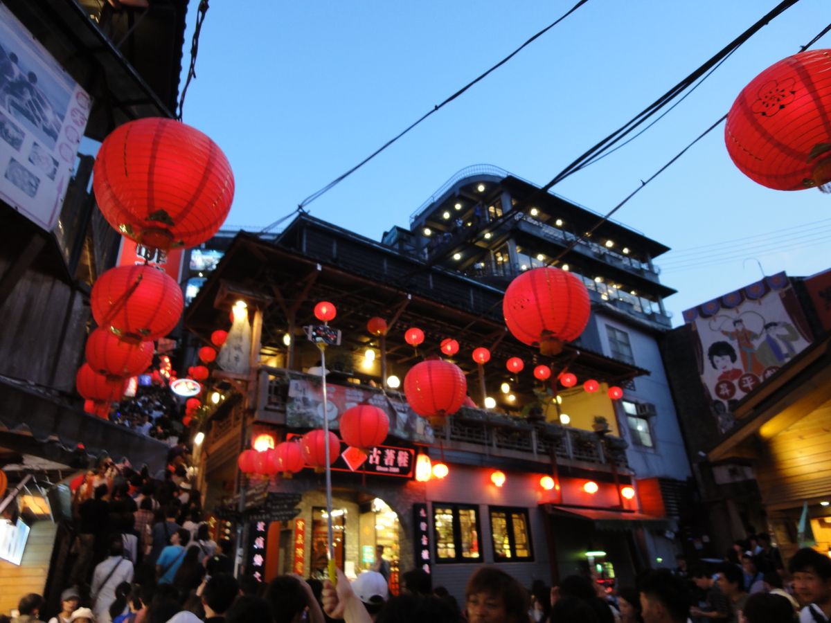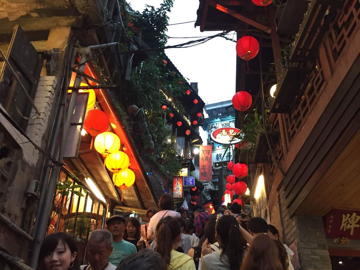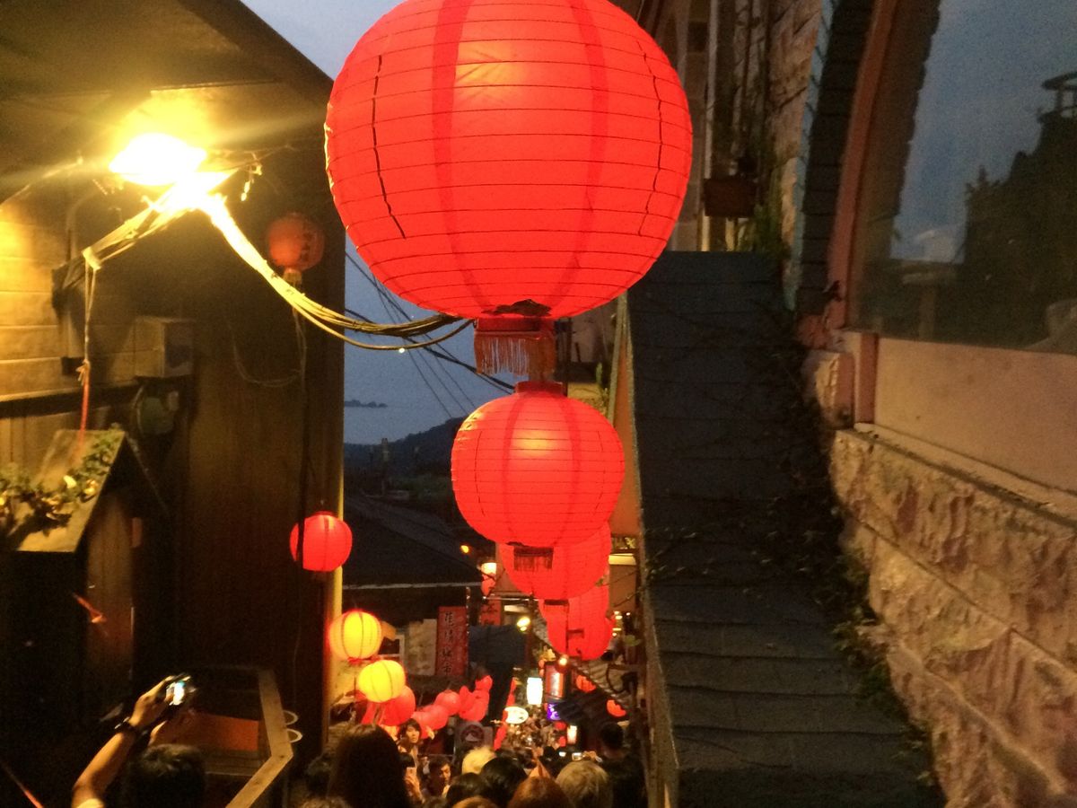 九ふんは、とても混雑していましたが、ガイドなしでも充分に回れる広さですし、自由に楽しめました。ガイドブックでは電車➡タクシーかバスがいいと書かれていましたが、帰りのタクシーやバス乗り場にはたくさんの人が並んでいて大変そうでしたのでチャーターしてよかったです。15時市内発にしたので、明るいときと暗くなってからの両方を楽しむことができました。