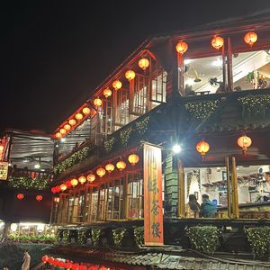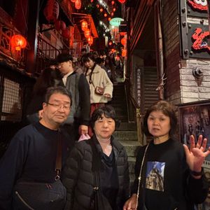 到着日に参加したので夕食付きツアーを選択しました。まずは古北饕さんで小籠包などのセットメニューをいただきました。2人で参加しましたがたっぷりの量、大満足のお食事でした。その後九份ツアーは時間通りに出発、ガイドさんと共に海悦楼景観茶坊へ。もう茶房は閉店時間の様子で入り口にロープがあり観光客は入れない様になっていました。もちろんツアー参加者はガイドさんと一緒に中へ。テラス席で台湾茶と茶菓をゆっくりいただき、お向かいにバッチリ見える阿妹茶樓も雨に霞む九份もとても素敵でした。確かにお店はほとんど閉まっていますが、階段は人がいませんからゆっくり写真撮影出来ます。最後に駆け込みでガイドの楊さんおすすめパイナップルケーキを買って締めくくり帰路につきました。とても楽しかったです♪