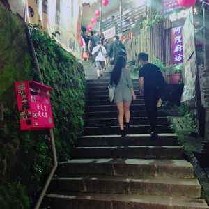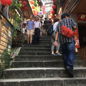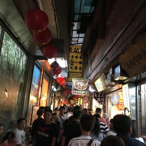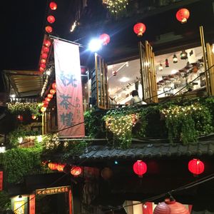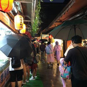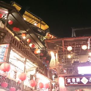 観光地だししょうがないと思いながらも歩くのは大変でした。人混みの中通りの真ん中で自撮り棒で記念撮影する人などがいるので、その度に流れが止まります。食べ物の匂いなどでも気持ち悪くなるので少し覚悟はいるかもしれません。通りの雰囲気は『千と千尋の神隠し』で見た感じが伝わって来ます。活気があって美味しい物もありワクワクします。本に載ってるのはごく一部なので、これ何?がいっぱいでお腹がはちきれそうでした。何人かとシェアしていろんな物を食べる事をオススメします!食べず嫌いな娘はシェアさせてくれなかったので、私は2品しか食べられませんでした次の日も日中にツアーを申し込んでいたので、雰囲気を楽しむことができました。通りは途中までは階段なしのアップダウンが続き、後半は下りの階段になるので大変ではなかったです。ガイドさんによっては逆になるかもしれないので、そうなると登りの階段は大変かと思います。ゆっくり九份を観光するなら2時間以上は時間に余裕を持った方がお土産なども選べると思います。夜市も食べ物屋さんやら服屋さんやらいっぱいあって、見てるだけでも楽しかったです。