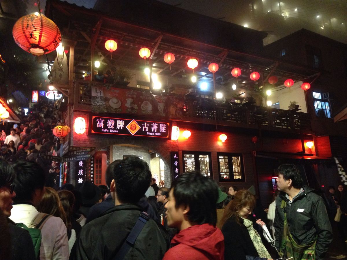 晴れた土曜の夜だったので、日本人だらけで混雑はものすごかったです。真ん中の階段は写真を撮るために並んでいる列で動かず。回り道して上まで登って下りたらそれで時間いっぱいでした。雰囲気を楽しむことが目的だったんですけど、茶藝館に寄るようなプランとか、もっと目的を持ってたらよかったかな~と思いました。ウロウロするには階段なので結構体力がいります。とりあえず、写真は撮れたのでそれなりに満足。ごはんもまずまず美味しかったです。