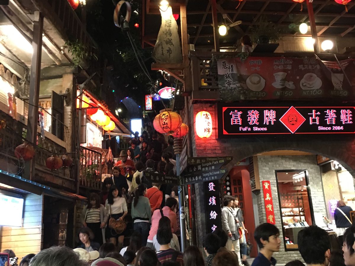 平日の夕方だったので、人はそれほど多くないことを期待していましたが、とにかく人・人・人。狭い階段にぎっしりひしめいていて動けず。日本人ばかりです。お土産屋さんもそれほど真新しい感じもしないので、一度行けばもういいかなと思います。お茶屋さんでゆっくりするという過ごし方もありなのかもしれないですけど、人が多すぎて疲れました。台北からはそれほど遠くなかったと思います。