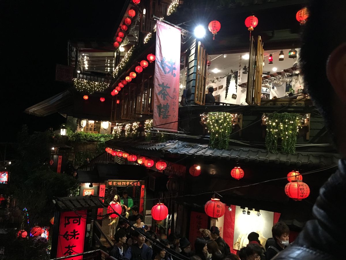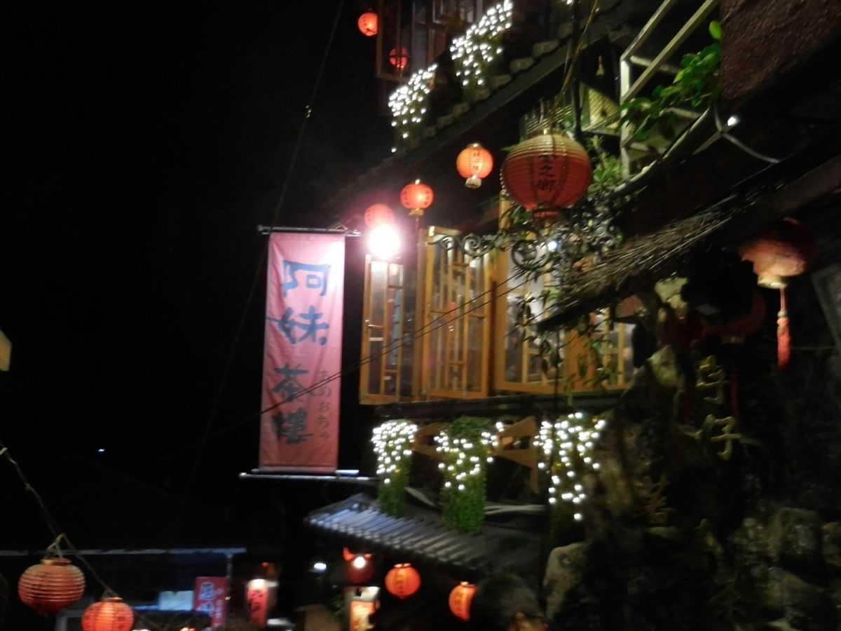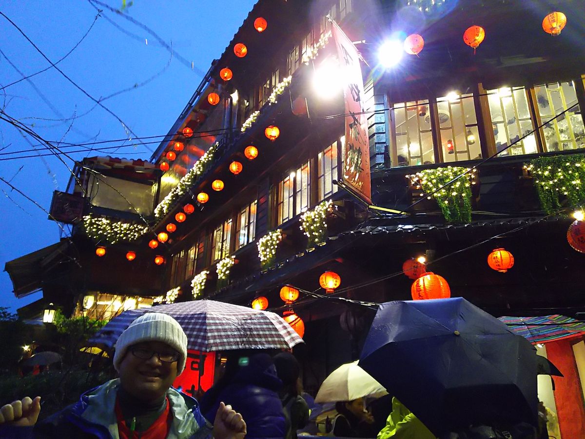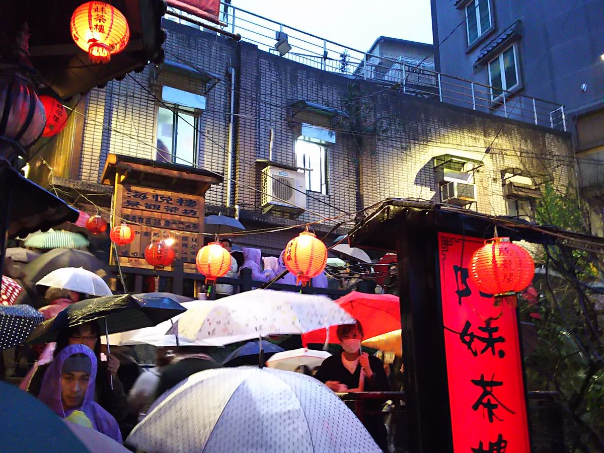 夜の九份と夜市のツアーに参加。九份に着いた頃には霧で見通しが悪く、九份での1時間のフリータイムの時には雨足が強くなってきた。名所の阿妹茶楼前を含め、細く急な階段は全て人がびっしりと詰まり、上がる人と降りる人でごった返していて身動きがとれず揉み合い、将棋倒し一歩手前の緊迫した状況。この状態が雨で滑り易くなった階段の上り下りの時間中ずっと続き、観光というより身の危険を感じる時間を過ごした。無事に、待ち合わせ場所の広場にたどり着いた時には身体の力が抜けた。「命からがら」脱出できた、九份での体験でした。