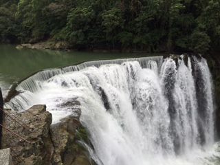 バスに揺られて30份ほど、十分に着いて川沿いの道を下って行くと見事な瀑布が現れます。