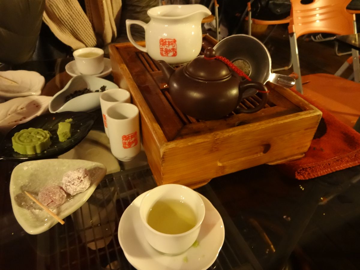 九份では映画のロケ地になった茶屋でお茶を頂く、やかんの下には炭が入った火鉢があり、お湯が無くなればすぐに継ぎ足してくれるし茶菓子もついているのでゆったりと1時間ほどお茶の時間を楽しんだ。