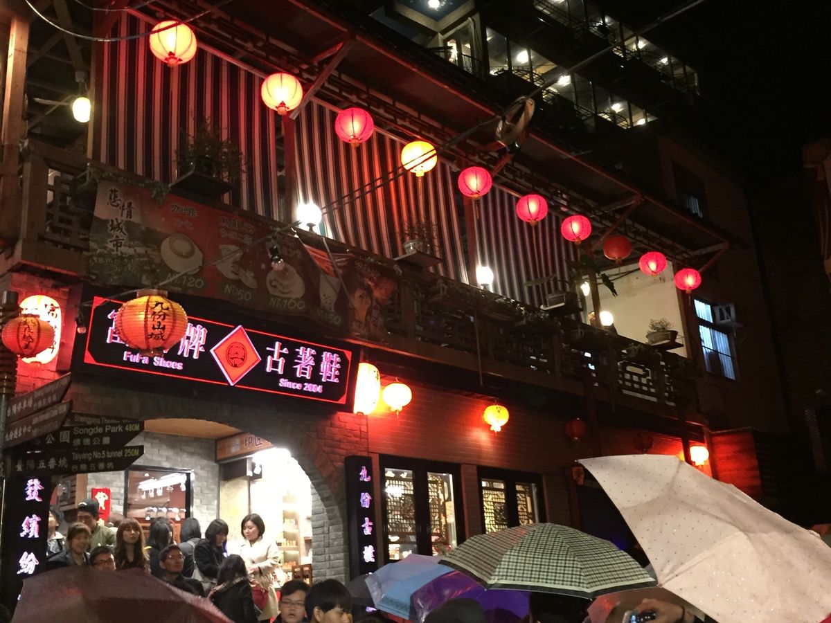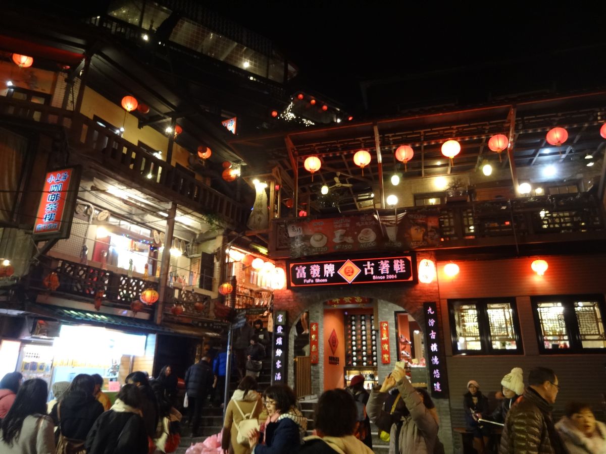 当日は雨。280人が6台のバスに乗り込んで九份へ。雨が降っていましたが、雨の多い土地柄と聞いていたので仕方ないです。九份に滞在はおよそ一時間。残りは中華料理店で軽食。日本の鄙びた中華料理店で出されるような料理でした。そのあと夜市へ。夜市滞在時間は45分。道を歩いて行って戻るだけで終わりました。この内容で1人4800円ほど。日本人観光客を舐めてます。しかし、九份は自力で行くと面倒なので、まあ存在価値はあるのでしょう。九份に関心がない方はお勧めしません。ちなみにアメ茶屋の写真を撮影されたい方は、アメ茶屋ではなく、向かいのお茶屋へ行くのが正解です。
