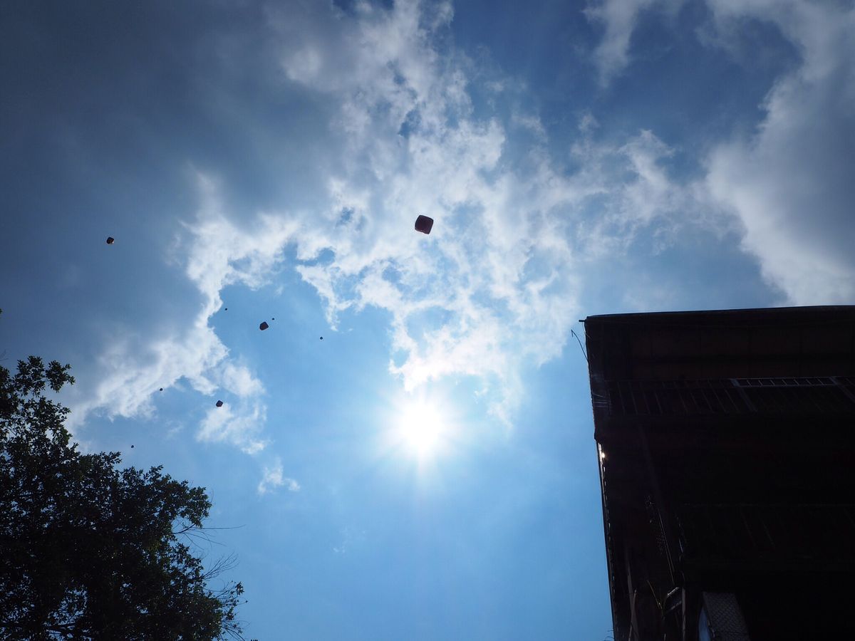 川沿いの道を戻り、十分の駅に向かうと線路沿いぎりぎりに天燈が並び汽車がすぐそばをすり抜けていく。天燈の4面すべてに墨で願い事を書き入れ中の燃料に火を付けて空へと送り出す、結構楽しかった。