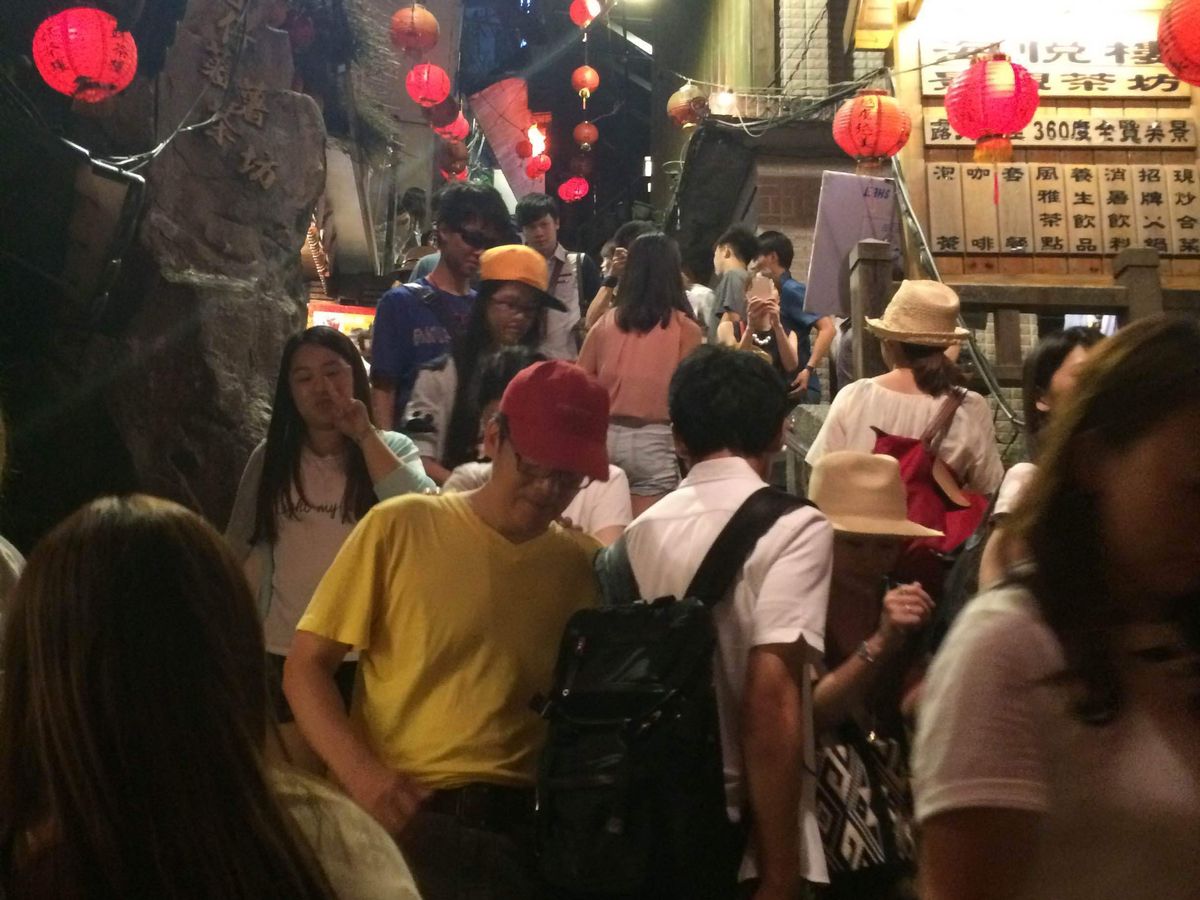 九份では大雨で最悪のコンディション。人も多すぎて階段を登るのも一向に進まづ、衣服はずぶぬれ、景色もほとんど見えず。散々でした。ピークシーズンとはいえ、もう少し工夫できなかったのでしょうか?過去に訪れて良かった場所なので大変残念でした。
