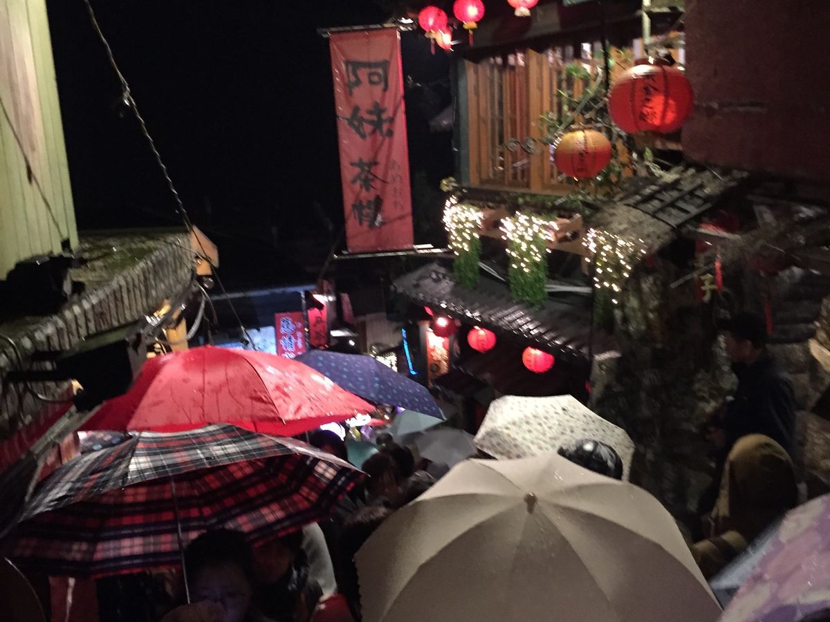 集合場所が分かりづらかったけど、何とか間に合いました。九份は雰囲気が素敵でした。台北から1時間という距離でしたが、ガイドさんが色々説明してくれて退屈しませんでした。その日は70人以上の参加者がいて混んでいました。さらに雨が降っていて、人混みが半端なかったです!階段が長いし急なので足が悪い人は大変かもしれません。雨のときは階段が濡れやすいので気をつけてください。野良犬もいて気がついたら近くに野良犬がいて驚きました。野良犬には絶対触らないでください。