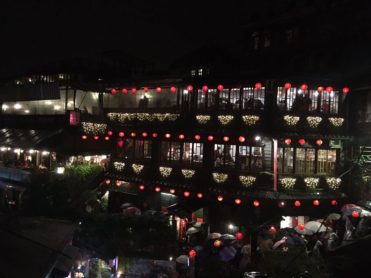 40代夫婦で参加です。九份はガイドさん曰く70%は雨だそうです。すごい人混みと雨で残念でしたが、情緒あふれる場所に感動しました。食べ物も美味しいし、お店の方も親切でした。ガイドさんは流暢な日本語で説明していただきわかりやすかったです。夕食は円卓を囲んで知らない方とでしたので何となく緊張しました。ご飯はおかわり自由なのでお腹いっぱいになります。台湾家庭料理の味付けで美味しかったです。特に麻婆豆腐がピリッとして辛いのですが後を引かず美味しかったです。夜市は饒河街に行ったのですが、人で溢れかえっていました。胡椒餅を勧められましたが、行列が出来ていたので時間が無く後日また行って食べました。言うだけあって美味しかったです。夜市も屋台がいっぱい出てて賑やかでした。香腸(台湾ソーセージ)が一番美味しかったですね。肉汁が溢れてきて絶品です。臭豆腐の匂いだけはちょっと無理でしたが。毎日夜市が開かれてるそうでうらやましかったです。今度は昼の九份に行ってみようと思います。