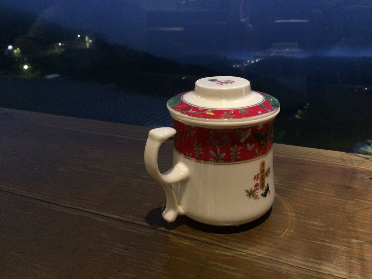 お茶を飲むだけで900元?と思いつつ景色を眺めていると店員さんが火鉢とやかんを持って来てお茶をいれてくれました。それとお持ち帰りのお茶を1缶。ああ、そう言う意味だったのね。でも、後で調べたら、他のお客さん達はみんな、お茶とお菓子のセットを頼んでいたみたい。それで300元。お菓子も4種類程出るらしいし、そっちの方が良かったなぁ〜。他の方々はご参考にしてね。