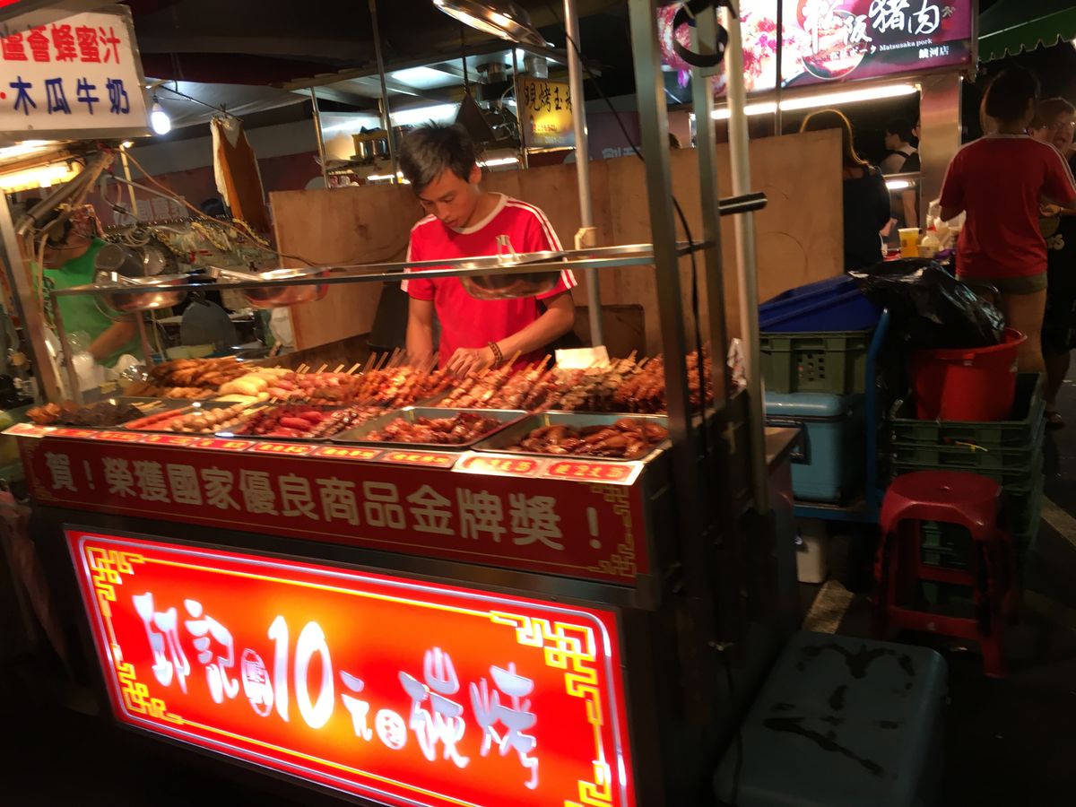 九份のあとは、夜市へ。日本のお祭りのような雰囲気で、月曜の夜にもかかわらずにぎわっていました。入り口付近の胡椒餅が人気のようでけっこう人が並んでいました。