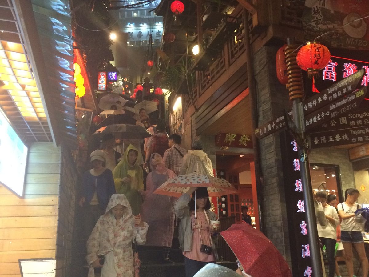 今回は夜の九份へ。小雨模様でしたが、人が多いので傘は危ない感じでした。沢山お店があって、お土産もいっぱい選べます。