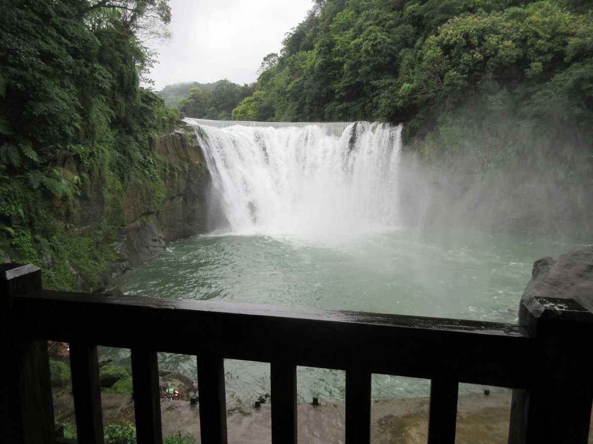 会社研修で台湾へ。所定の最大手旅行代理店では一人\12,800!こちらを検索してみると、約半額で、口コミも高評価。とっととweb予約しました。宿泊先がピックアップホテルではなかったようで、後日改めて連絡があり、お迎え頂けるとのうれしいお返事。当日は気温35℃、湿度70%のうだるような暑さ。外で立っているだけでジトッと汗が…。ツアーコンダクターの葉さんは6年京都でお勤め経験がおありとのことで、ガイドも会話も何の問題もなし。台湾ビューティですね。同乗の方は5人の日本女性で、男は私と子供だけ。皆さんに御気遣い頂き、楽しく見物できました。十分の滝は川の水質が悪く、お世辞にも綺麗とは言えませんが雰囲気は味わえます。九分天燈上げはいいですね!ぜひとも皆さん体験されてください。気持ちが入ります。その後平渓線に乗るとあちこちに残骸が…。回収しないんですかね?ご飯は九分茶楼で。ツアー専用のお店のような、団体さんばかりですが、味はまあまあ。家庭料理風で美味しかったです。御茶をするのでしたら、天空の城がお勧めです。ちょっと外れていますが(中心より50m位(笑))景色も最高、静かで上品な茶楼です。飲みきれない茶葉はお持ち帰りしてくれます。