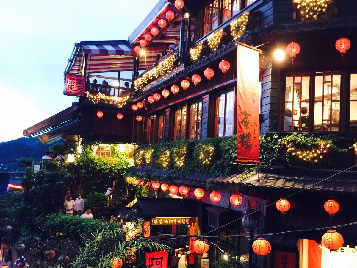 本来ならライトアップされる夜のツアーの方が綺麗だとはおもいましたが、ツアー終了時間の頃にはライトアップもみれたので十分満足できました!私達がいった6月は台湾では梅雨明けだというのに3時位からスコールが一時間くらいふるのが当たり前のようで雨具は用意してましたが台北の集合場所を出たときにはどしゃ降りの九ふんを想像してました。カラッと迄はいきませんが九ふんは雨に降られることはありませんでした。台北とは逆な天候とガイドさんに教えてもらいました。フリー旅行できている私達は初九ふんは勿論のことそれ以外も日本人のガイドさんに教えて頂き助かりました