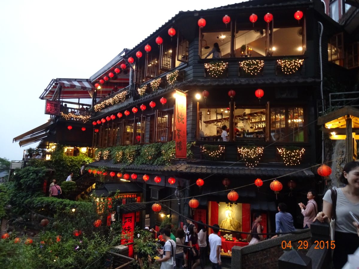 2015年4月16日に「ナイト九ふん観光+夜市散策 格安ツアー<軽食付き>」に参加。私たち夫婦以外は午前のツアーにも参加されていたようでバス車中では疲れからか眠ってる人が多かった。車中からはカラフルな台湾のお墓なども見られた。九份では珍しいぐらいの晴天で(ガイドさん)薄暮から夜にかけてエキゾチックな九份を味わえた。階段の両側は京都清水寺の坂道を思わせるような土産物屋がびっしり。台北に帰ってからの夜市散策も楽しかった。屋台の胡椒パン?をもう一度食したいと別な日に他の夜市に出かけたが出会うことができなかったのは残念。ガイドの「央代」さんは話しがとても上手。最後はホテルまで送っていただき私たちの翌日からの旅行についても親切にアドバイスしていただいた。台湾人が大好きになりました。新潟にスノボーにいらっしゃい時には大阪にも足を延ばして下さい。