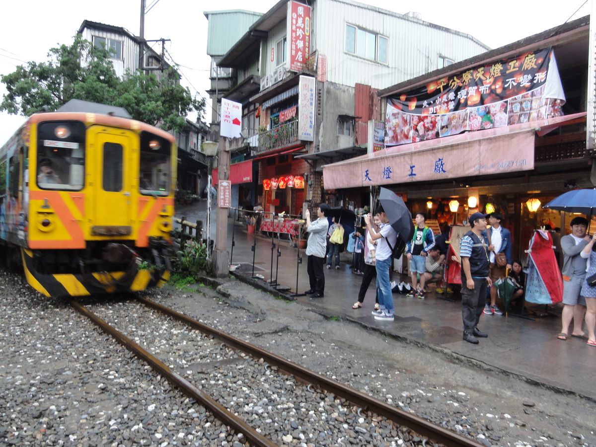 天燈上げをする十分は、とくに十分駅前(駅前商店街は100mもないのですが)は観光地化しており、のどかな雰囲気のはずが、大音量の音楽が流れ、台無しでした。