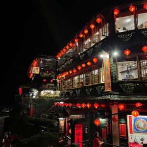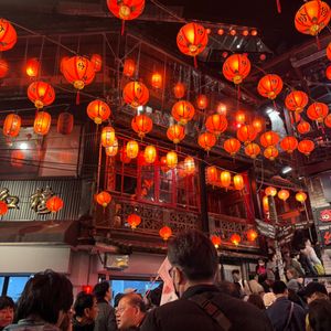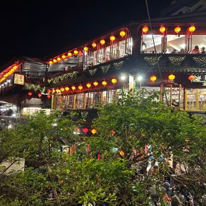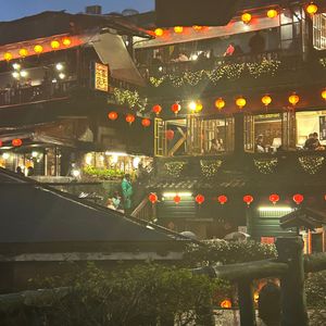 夜の九份バスツアーで 提灯🏮点灯の幻想的なイメージを持っていましたが 到着が8時過ぎで 大半のお店が閉まっていたこともあり 点灯してる提灯の数が少ないことで 幻想的な雰囲気はありませんでした。ただ お茶の作法を学んだことは 楽しく お茶屋の回りの提灯🏮は それなりに点灯して その場面は 満足しておりました。