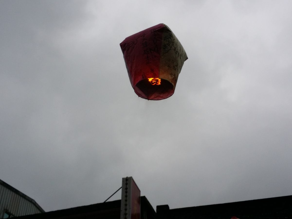 私たちが参加した日は雨でしたが、天燈あげはできました。天燈にお願い事を墨で書いて飛ばします。思ったよりとても楽しく、空へ飛んで行く天燈を見上げるのは、気持ちが良かったです。天燈はひとつ200元です。四方にお願い事が書けるので、私たちは4人でひとつあげました。