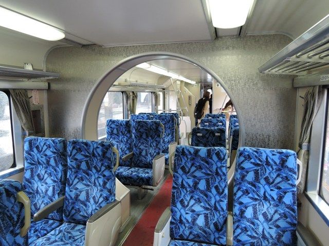 十分からの列車、この時だけかも知れませんが前1両がリクライニングシートの車両でした。