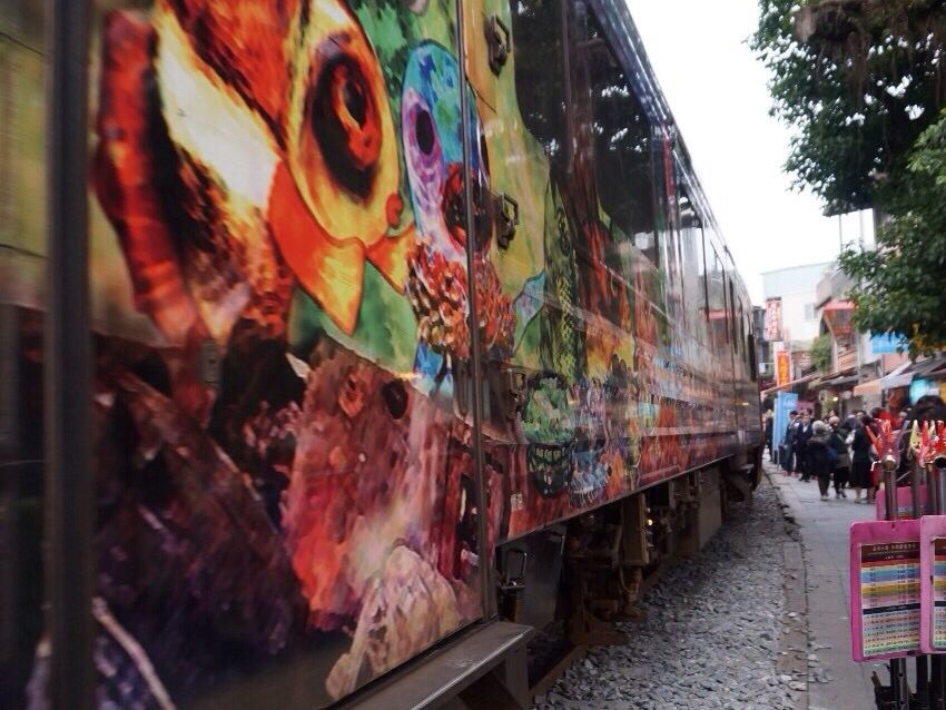 十分から九ふんの予定でしたが、日曜日ということで、車で上がれるうちに九分に行くことになり先に九ふんへ。昼間の九ふんは人が多いだけで可もなく不もなしといった印象。その後十分へ。駅近くのお店でTD200で4色の天燈を買い、4面にいろいろお願いを書いて天に向けて発射します。お店の方が写真も撮ってくれます。思っていたより日本人は多くないようでもっぱらハングルの天燈が目につきました。たまたま駅で列車とも遭遇しました。クモの子を散らすような場面も目にすることができ、とても楽しい思い出になりました。九Fふん、十分は道も狭く、ツアーバスにはいろいろ制約があるので貸切チャターがお勧めです。