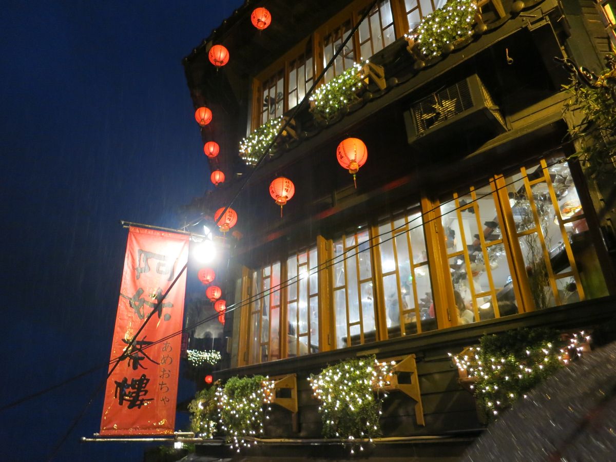 夜になり小雨が降り始める中を出発。バスの中はほぼ満席状態、渋滞も無く九份の駐車場も車が少なく九份の近くまで行けた。参加者は各々九份の町へ散策へ出発、小雨の九份はこれはこれで最高でした。小雨ににじむ提灯の灯、坂の左右に灯りが灯った街並み、本当に千と千尋の町その物でした。お世話して頂いた女性(台湾人)の方も好感持てました。有難う御座いました。