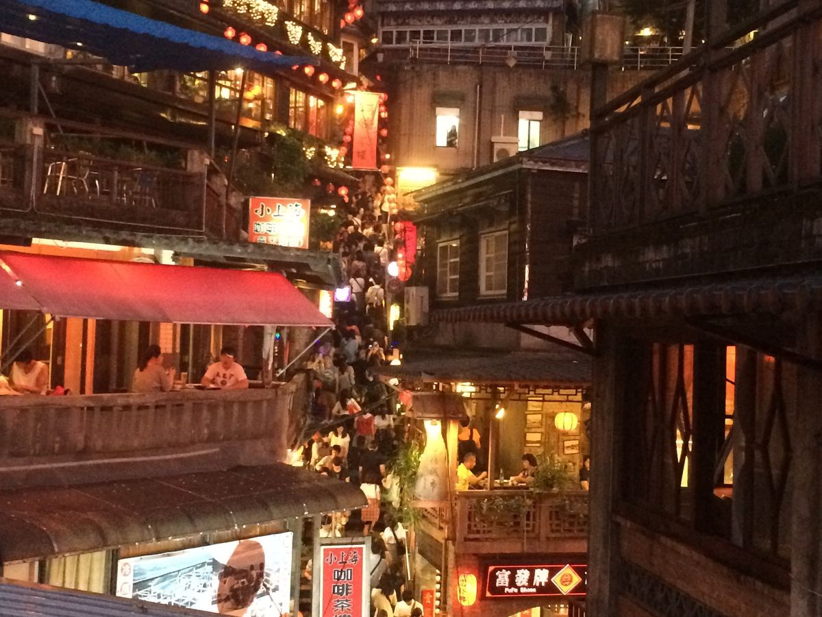 九ふん自体はとても素晴らしいところでした。でも、大人数のツアーバスが何台もいっぺんに押し寄せたので、階段が日本人の長蛇の列になっていました。ガイドさんがいなければ食事もできませんでした。予約した人しか入れないレストランにガイドさんが交渉してくれて見晴らしいのいいところで休むことができました。次はもう少しゆっくりしたいです。