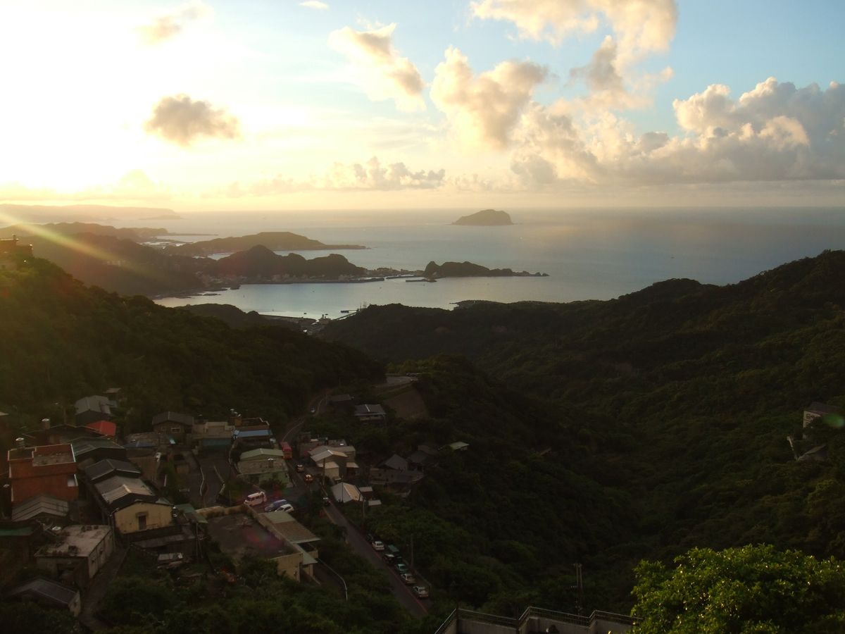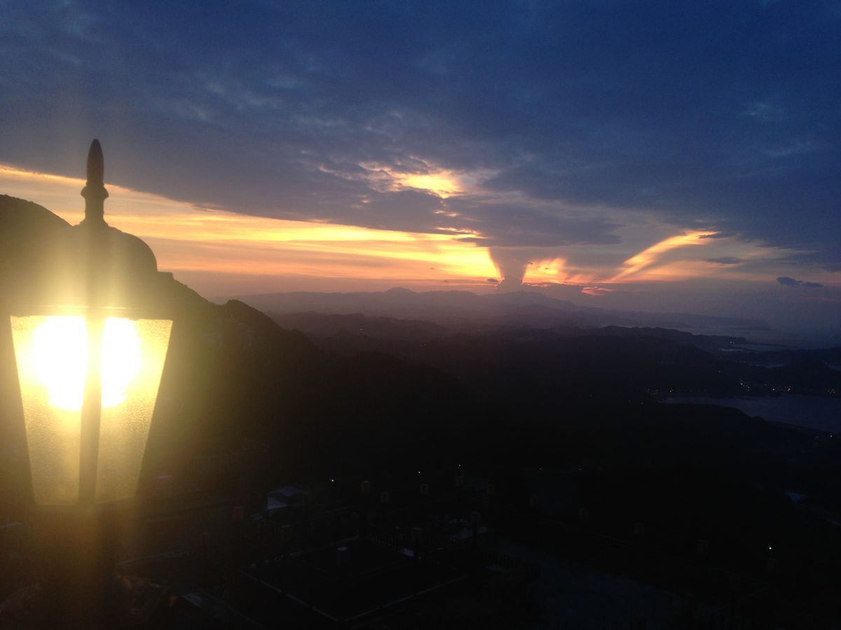 着後、すぐに茶藝館に行きテラス席に着けば、海と山々を眼下に素晴らしい日の入りが見られます。