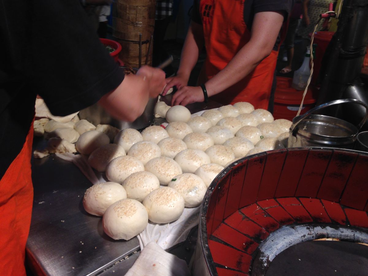 饒河街夜市での胡椒餅は熱くておいしいです。並んで買ったかいがありました。