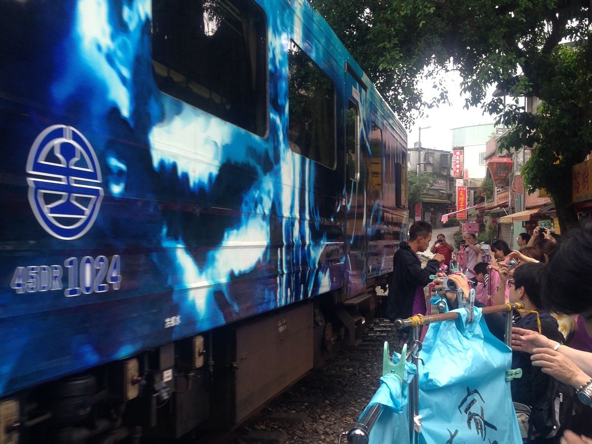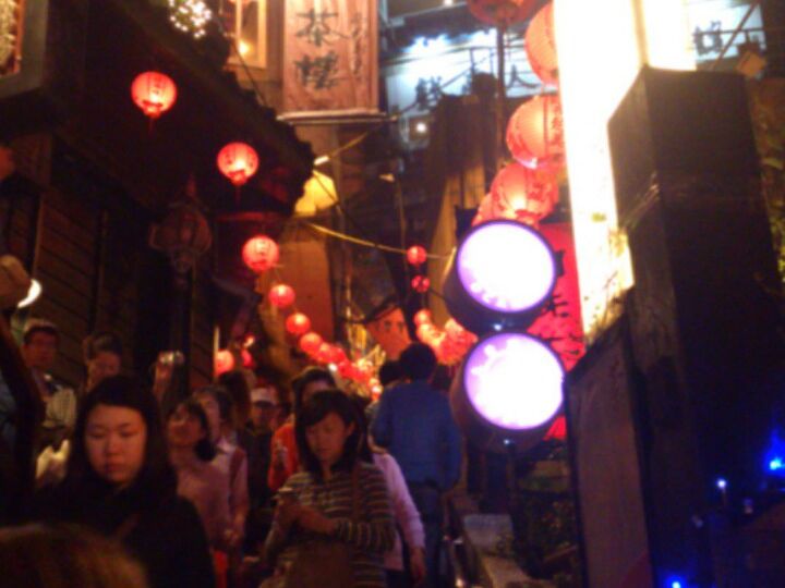 天燈は、すごい人ごみの中、願い事をかいて飛ばしました。天燈は、書きやすいように洗濯バサミでポールに貼付けてあるので,慣れたもんです。墨汚れにはご注意を。はい,次ー!みたいな流れ作業の中呼ばれて線路の中に上がり、ちゃんと4面写真を撮ってくれてましたよ。日本で線路の中に入る機会はまず無いと思うので、貴重な体験でした。