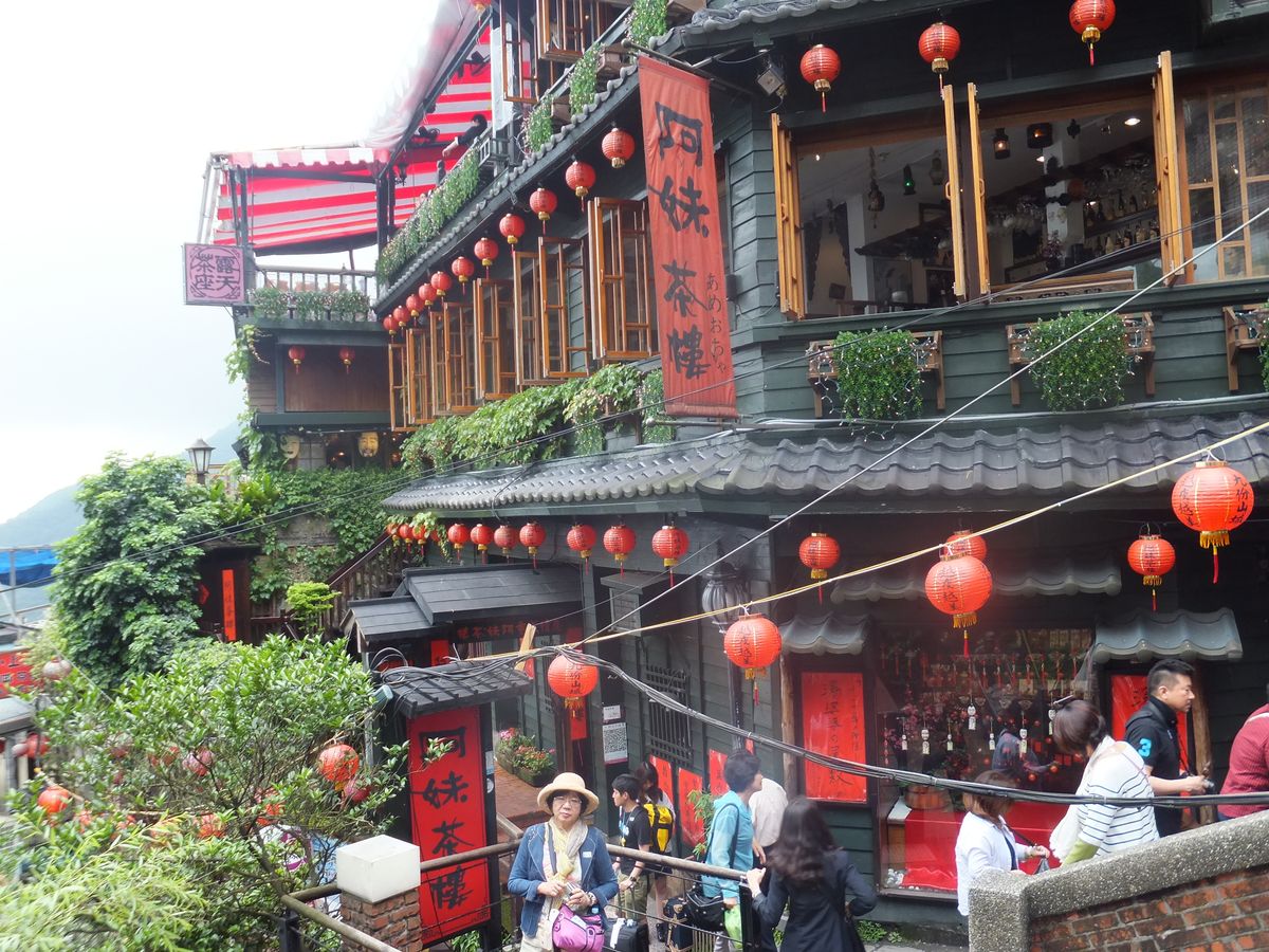 九ふんは雨が多いエリアだと聞き覚悟していましたが、雨季だった事もあり、ツアー中ずっと酷い雨降りでした。九ふんは坂道・階段が多く歩道も狭いので、傘をさして人とすれ違うのが大変で、合羽を持参すればよかったな・・・と思いました。シャッターを閉めているお店が多く、ちょっと残念でしたが、全体的な雰囲気は楽しめました。夜市は散策時間が短く、急ぎ足で一回りするだけで終わってしまいました。九ふん・夜市ともに、もう少しフリータイムが長ければ良いのにと感じました。