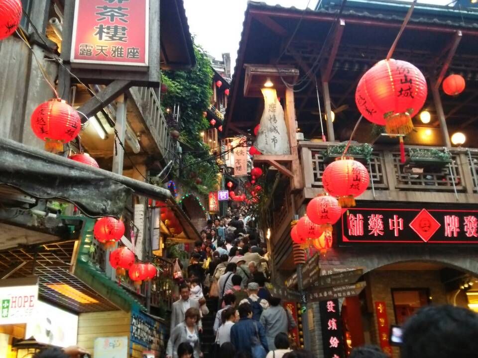 その後、平渓線の電車に乗り、瑞芳駅まで行きました。そこからバスで九份へ。九份ではお昼ご飯がツアーについていたのですが、少し豪華で、とても美味しく、満足でした。自由時間を2〜3時間もとってもらえたので、お茶屋さんでゆっくりできたし、お店も色々回ることができて、とてもよかったです。
