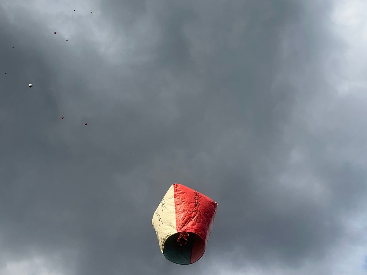 あいにくの小雨の中でのランタン上げとなりましたが、それでも「感動だった」とのお言葉をいただき、私たちも大変嬉しく思います。空に舞い上がる天燈は、雨空の中でも特別な風景を演出してくれますね。