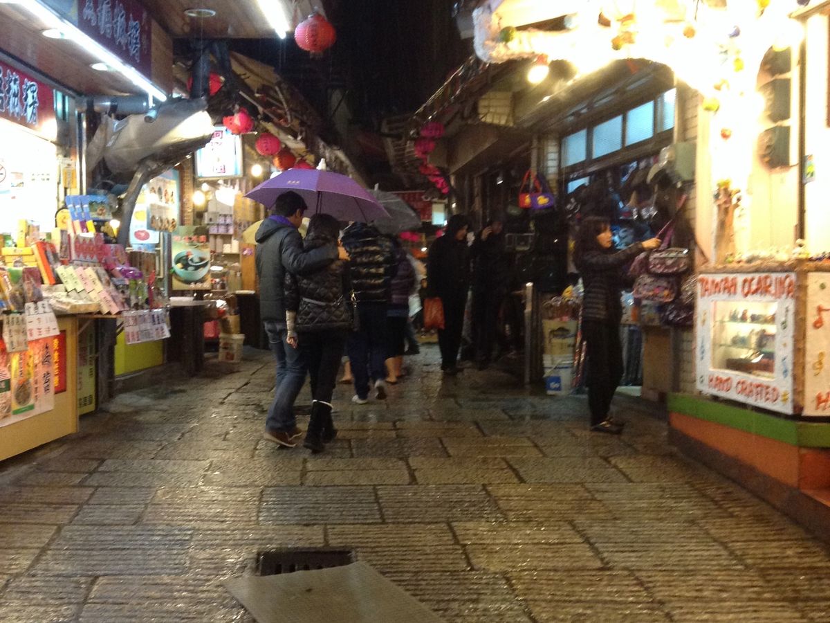 2013年12月16日(月)、初めてナイト九分観光に行ってきました。どしゃ降りの雨の観光でした。現地のガイドさんによると12月は中旬いっぱい雨期で下旬にならないと毎日雨だそうです。狭い階段状の九分は歩くのも大変で傘と傘がぶつかりずぶ濡れ、店もほとんど閉まっており、幻想的な提灯も雨でよく見れません。冬は日中の観光がいいかも知れません。寒さは東京とほとんど変わりませんが日中は一枚上着は脱がないと汗ばみます。帰りの夜市も雨の中でしたが初めて見る夜市は良かったです。ガイドさんも丁寧で◎です。春/秋が気候的に観光は良く、ちなみに6月は日本の梅雨と違い、スコールが時々降るだけとのガイドさんの話です。