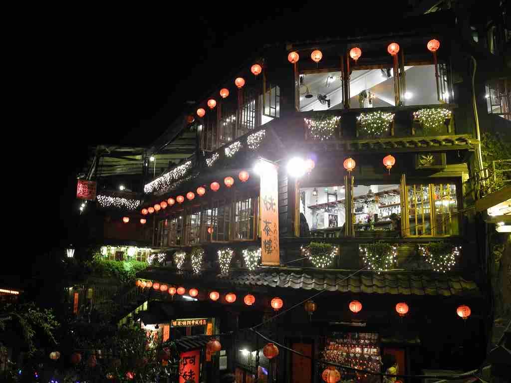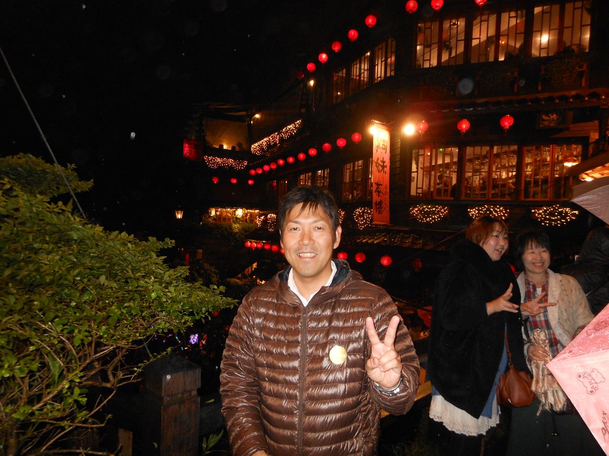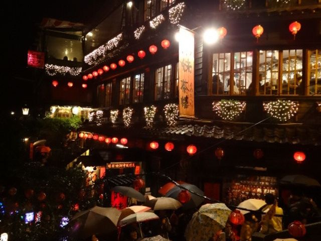 ナイト九份に参加しました。年末(12月29日)の参加ということで、かなりの混雑でした。(ちなみに翌日は、この日の倍近くになると、スタッフの方はおっしゃっていました)私たちの回ではバス十台を出したようです。雨の日が多いということでしたが、当日も少しだけ雨が降りました。狭い道、お互いにすれ違いながら建物や景色を堪能しました。日本には無い風景や建物、そして「千と千尋の神隠し」さながらの光景に感動しました。夜だけでなく、朝や日中の景色も今度は見てみたいなと思いました。