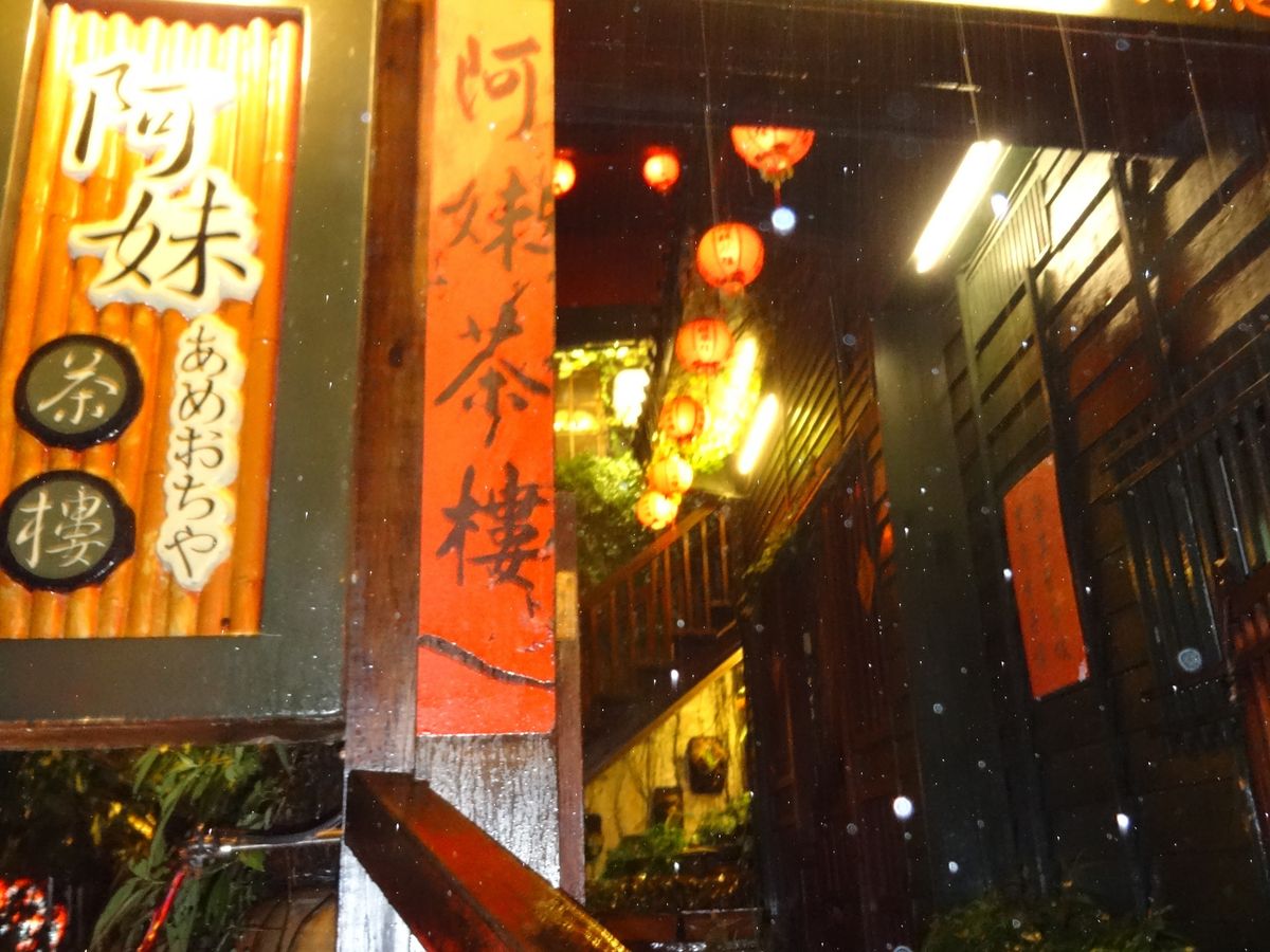九份についてバス停から急な石畳の階段を上がっていくと有名な【あめおちゃ】を見ることが出来ます。入りませんでしたが中は喫茶店になっていて実際に入ることも出来ますよ。