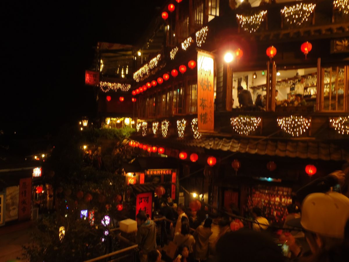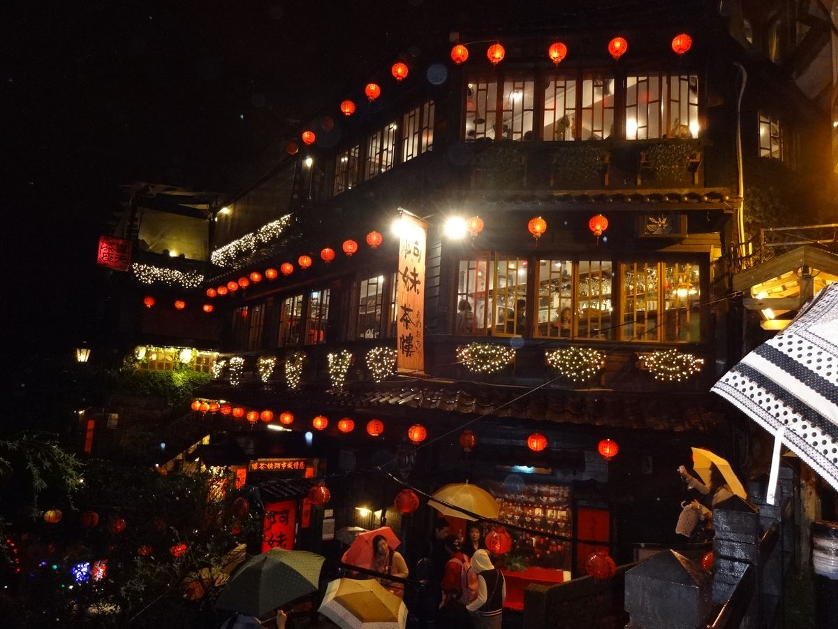 夕刻発で九份へ行ってきました。ホテル16時出発、途中シャトルバス乗り換えで九份に17時過ぎ到着。すでに日は沈み真っ暗。残念ながら雨も降っていて気温も低く、ダウンを着ての散策。そのような中でも日本人観光客をはじめ台湾人の観光客などで狭い道が超満員。混んでるという前情報はあったものの想定の域を超えていました。2時間くらいの散策でしたが、ノスタルジックを感じるツアーでした。今度は昼間に行ってみるのもいいのかも?!。