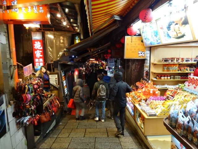 でも、夜の九份の雰囲気は上々です。行ってよかったと思いました。散策の途中で道の確認のためにインフォメーションセンターに居た現地の人にたずねましたが、日本語は少しできるとのことでしたが、とても親切に対応してくれて助かりました。迷ったわけでもないのですが、夜なのとさっきまで大勢の人がいたのに意外と人がいなかったので、不安になったためたずねました。台湾の人は、とても親切で、若い人でも日本語が分かる人が意外と多いなと思いました。