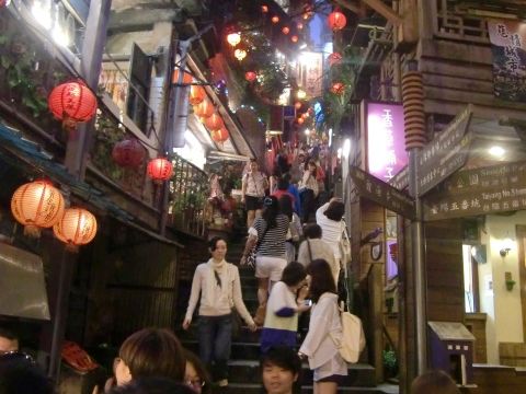 日本も中国も連休中で、台湾への観光客が多い時期だったため、九ふんも夜市も大変な人ごみ・・・