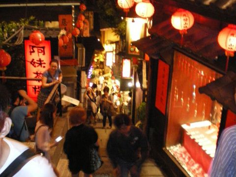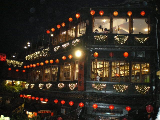 昼間の九分とはちがってライトアップされた茶館などがとてもきれいでした。残念なことに、平日の夜ということで早く店じまいするところもあり、前回(日曜の昼間)来た時の活気はありませんでした。夜の九分や夜市は個人ではなかなか行きにくいところ、ホテルまで送ってくれるのは大変助かりました。