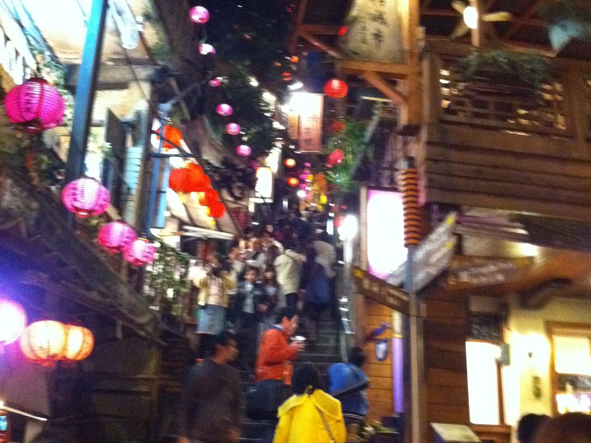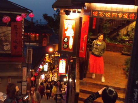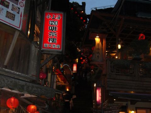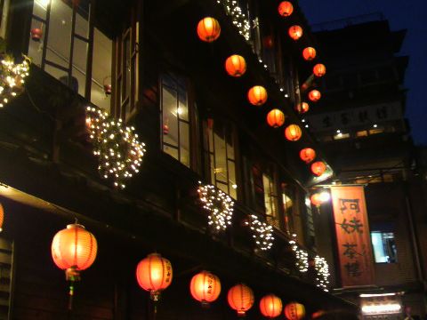 2012.4.27 あいにくの雨模様でしたが、降ったりやんだりで、これはこれで風情があってよかったです。ナイトツアーでしたが、夕暮れ時に到着し、基隆港も見下ろすことができ、夜景を見ながら郷土料理(軽食ということでしたが、普通の量の食事、日本人好みの素朴な味でした)を味わうこともできました。ガイドさんの案内にはありませんでしたが、事前にネットで調べた小さなトンネルの先にある食事もできるお茶屋「芋仔蕃薯」(階段沿いで、「阿妹茶酒館」の隣のトンネルを入ってください)がレトロ感たっぷり、ガイドブックにも出てこない店だからか、貸切状態。接客も大変親切で大満足。お茶も美味しい、夜景もきれい、サービスのお菓子が気に入って、お土産に50元/袋を15袋購入したら、おまけを5袋もくれて、またまた大満足。九フンは絶対にお薦めです。台北市内の喧騒を忘れてゆったり、まったりできますよ。