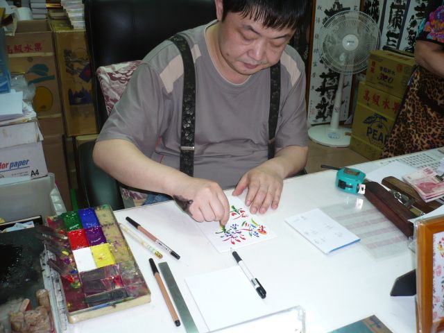 ガイドさんもお勧め、花文字で子供の名前を書いてもらい額縁込みで1200円程。台湾らしいお土産ができました。
