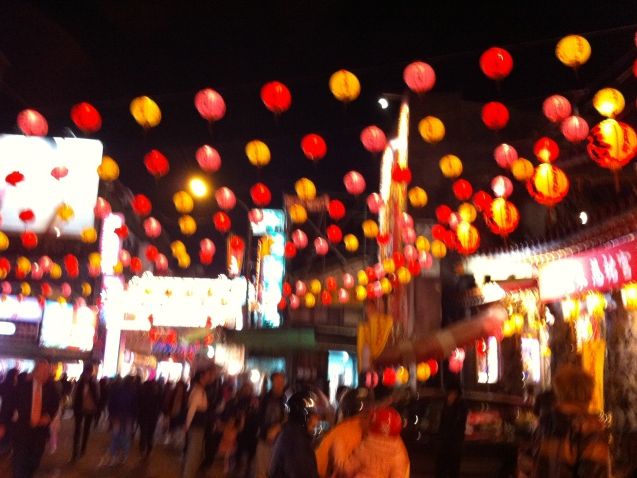 以前昼間の九ふんには行ったことがあったので、今回は夜に行ってみました。赤い提灯に灯が入った風情はちょっと別の次元に紛れ込んだ気がしました。お天気にも恵まれて、暑くも寒くもなく、観光客は多かったですが、それでも珍しいお店を見て歩く時間はありました。軽食は十分の量で味もそれなりでした。台北市内に戻って夜市に行きましたが、疲れていたので、40分の自由時間だけでホテルに送って頂きました。九ふんの後の夜市は時間も遅くなり、小さいお子様連れには不向きかもしれませんね。とにかく十分に楽しめるツァーでした。