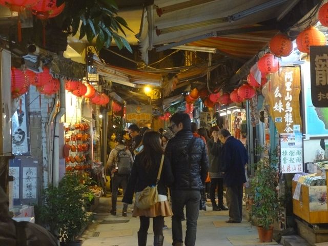 心配していた雨は、散策をはじめたころから次第に強くなってきました。上り下りする階段に傘を置いて、自由に利用できると良いと思います。しかし提灯にライトアップされた町並みは幻想的で、一見の価値があります。散策の時間も雨のことを考えると妥当だと思います。ただ夜市の散策には時間が足りないので、タクシーを利用して帰りました。夜市の前まで迎えに来ているので、すぐに乗れます。また料金も日本と比べて驚くほど安かったので、自由行動するときはおすすめします。