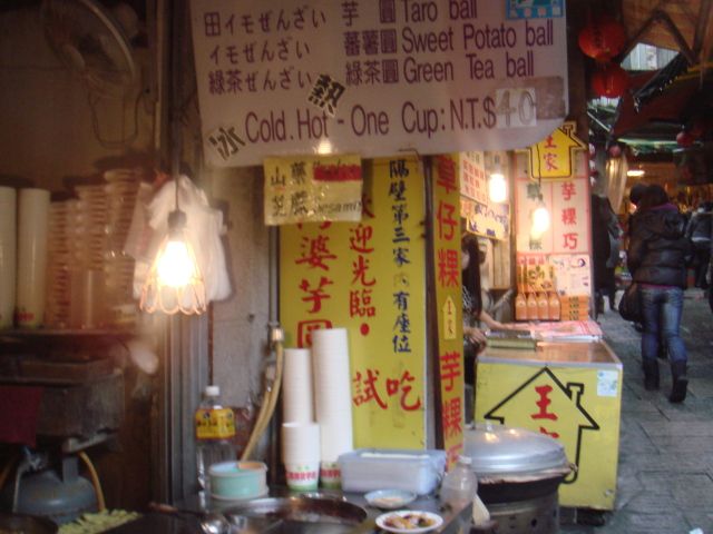 集合場所の3か所のホテル以外では早めの時間の参加となります。九份はあいにく雨でした。夕方のツアーの参加だったのでちょうちんの明かりが情緒的で幻想的な景観を楽しめました。小路を歩いていると臭豆腐の匂いが少し気になります。12月とはいえ予想以上に寒く、熱いお茶で冷えた体を温めました。