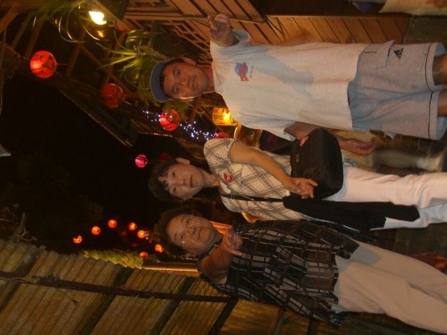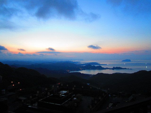 九ふんへ家族で行ってきました。集合場所のみやげ物店(金龍)からバスで約1時間です。夕日が東シナ海に沈むころに到着しました。バスから降りて夕日を見ながらレストランへ歩いて行きました。バスの中では、ガイドの呉さんのたのしい会話で退屈もせず良かったです。