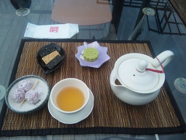 お茶の淹れ方を教えていただいたり、飲んだりして、ゆっくりしてました。通りの雑踏と対照的な落ち着いた雰囲気がまたよかったです。