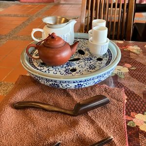 お店の人が台湾茶の淹れ方飲み方を教えてくれるので、外の海の景色を見ながらゆっくりティータイムを満喫しました。
